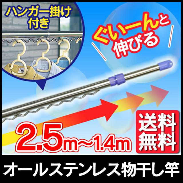 物干し竿 屋外 室内 伸縮 1.4〜2.5m ステンレス オールステンレス 丈夫 サビにくい ハンガー掛け付 ベランダ物干し 洗濯物干し 室内物干し 部屋干し 梅雨 除湿機 サーキュレーター 伸縮竿 オールステンレス物干し竿 アイリスオーヤマ N-ASU-260H *