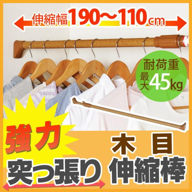 伸縮棒 つっぱり棒 木調強力伸縮棒 H-MNPJ-190 送料無料 幅110〜190cm 突っ張り棒 強力 つっぱり 突