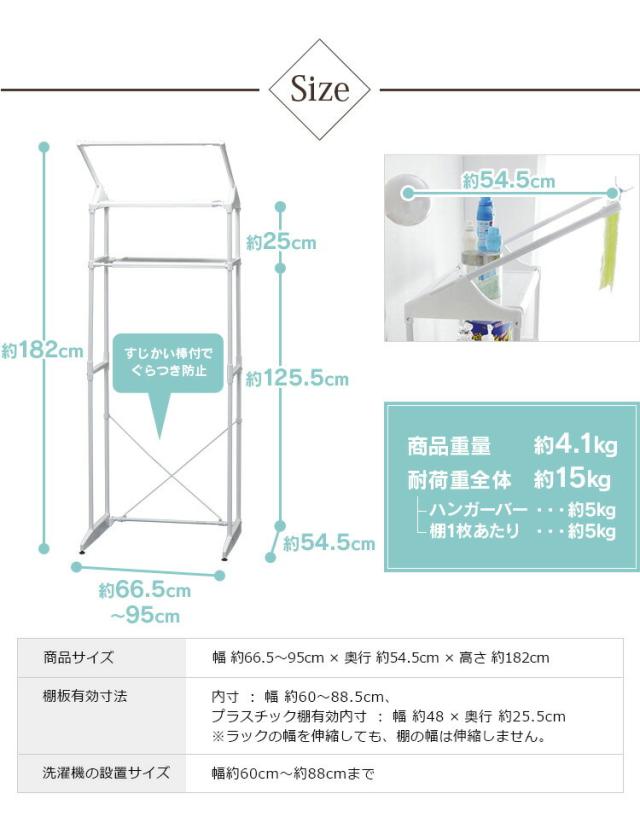 ランドリーラック スリム 防水パン対応 おしゃれ 縦型洗濯機 伸縮 洗濯機ラック 棚 ハンガーバー 洗面所 収納 脱衣所 一人暮らし 新生活 アイリスオーヤマ HLR-181P *