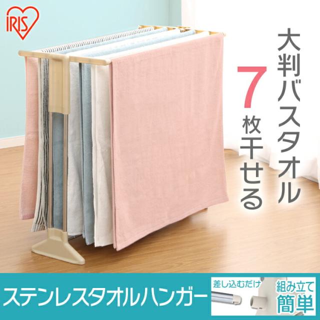 タオル干し スタンド 折りたたみ タオルハンガー ステンレス ワイド 大判バスタオル 7枚 幅85cm コンパクト 組立簡単 工具不要 タオル干しハンガー バスタオル干し 洗面所 室内 部屋干し 梅雨 除湿機 サーキュレーター アイリスオーヤマ STH-86KR *
