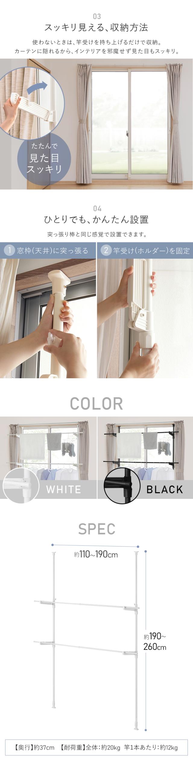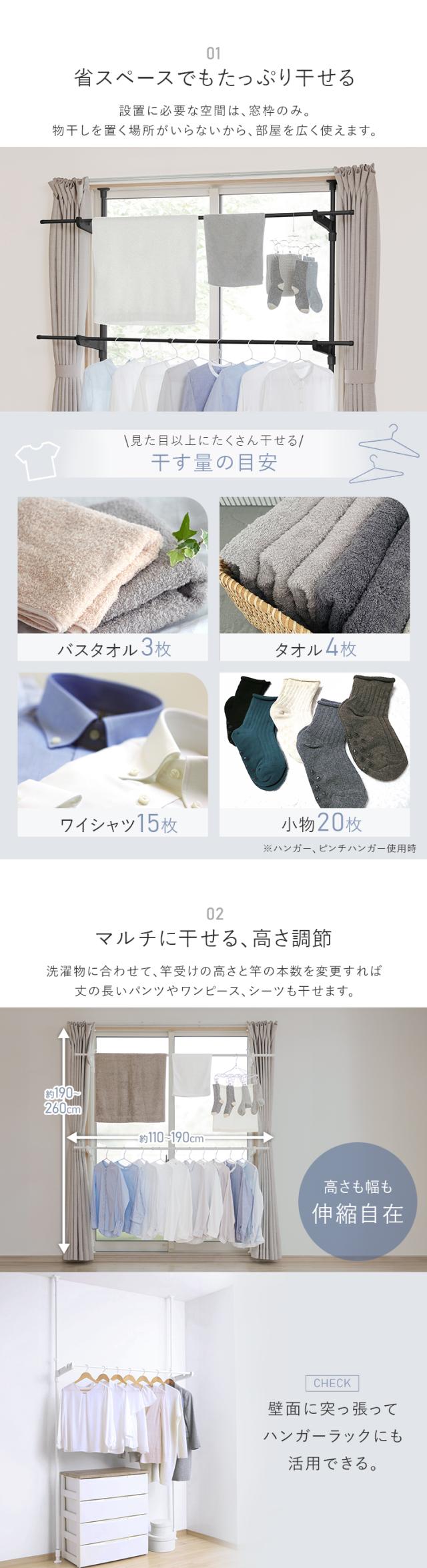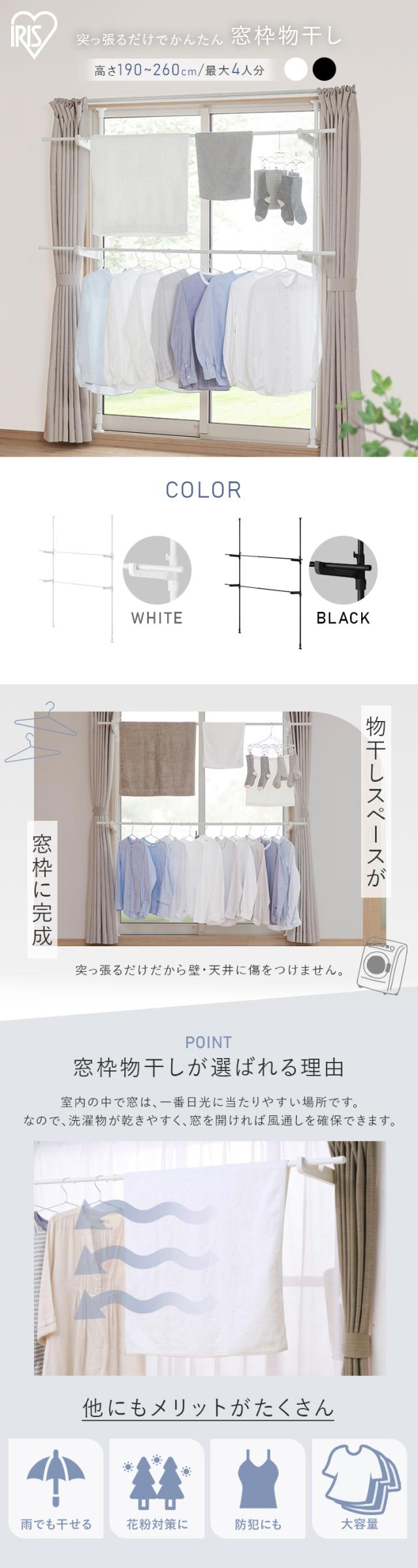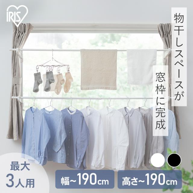 室内物干し つっぱり 洗濯物干し 室内 省スペース 幅 高さ 110〜190cm 伸縮自在 2段 大容量 簡単設置 部屋干し 室内干し 窓 窓際 窓枠物干し 花粉 梅雨 物干し 突っ張り 突っ張り物干し 一人暮らし まとめ洗い 新生活 アイリスオーヤマ MW-190NR *