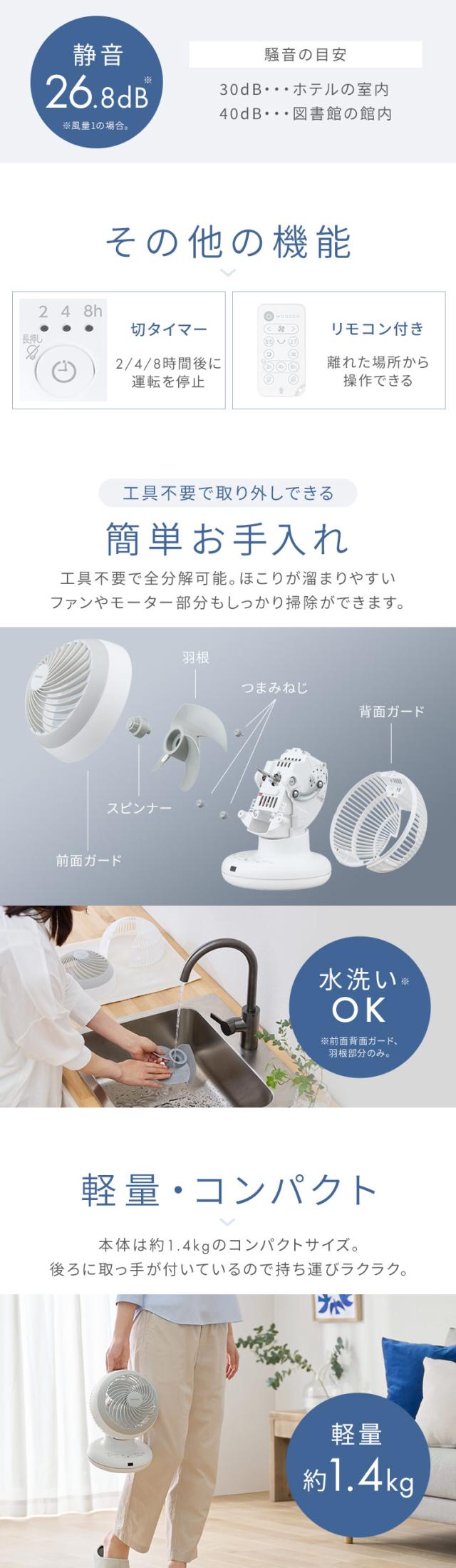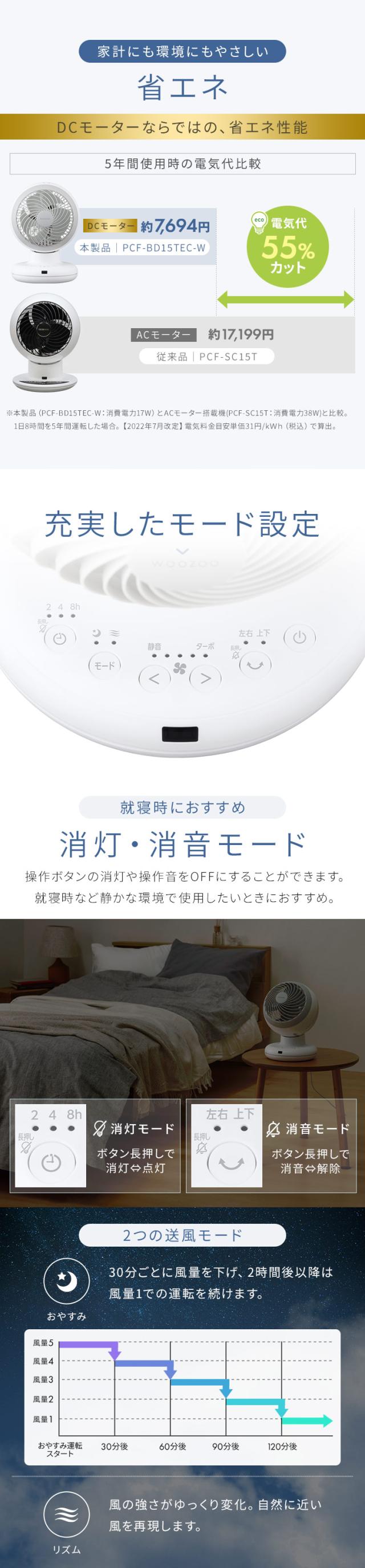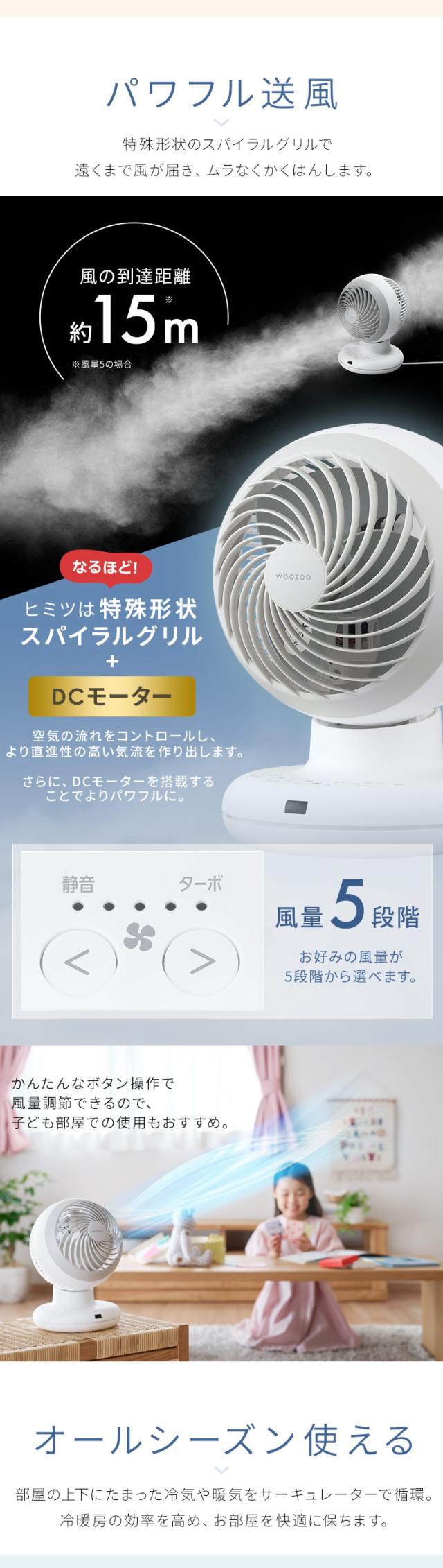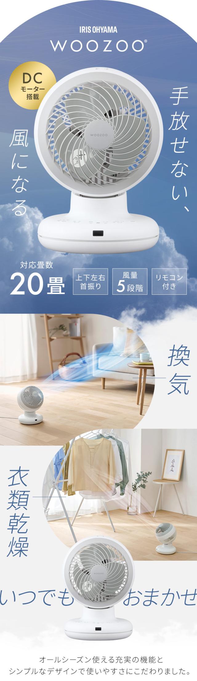 サーキュレーター アイリスオーヤマ dcモーター 洗える 上下 左右 首振り 20畳 省エネ 軽量 扇風機 パワフル送風 換気 節電 電気代 リモコン付 タイマー付き 風量5段階 衣類乾燥 分解 梅雨対策 WOOZOO PCF-BD15TEC *