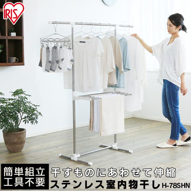洗濯物干し 室内物干し ステンレス 丈夫 サビにくい 伸縮 竿 横幅 折りたたみ 省スペース 軽量 組立簡単 工具不要 ロング丈 ワンピース バスタオル 物干し 室内 部屋干し 梅雨 除湿機 サーキュレーター 花粉 アイリスオーヤマ H-78SHN *