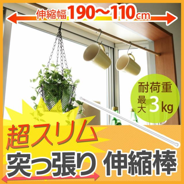 伸縮棒 つっぱり棒 伸縮棒超スリム RSV-190 送料無料 幅110〜190cm 突っ張り棒 つっぱり 突っ張り 棒