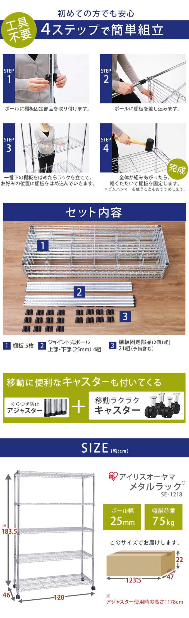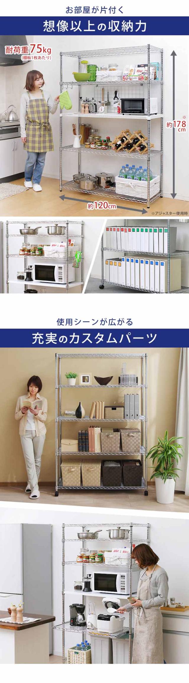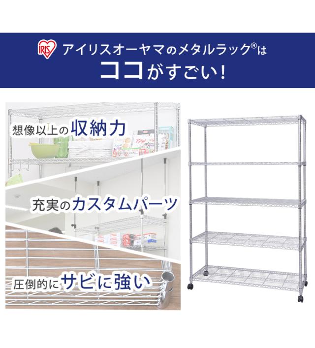 スチールラック ハンガーラック メタルラック 幅120 5段 奥行き46 メタルシェルフ 5段 キャスター付き シェルフ 棚 メタルシェルフ ワイヤーラック ラック スチール シェルフ 収納棚