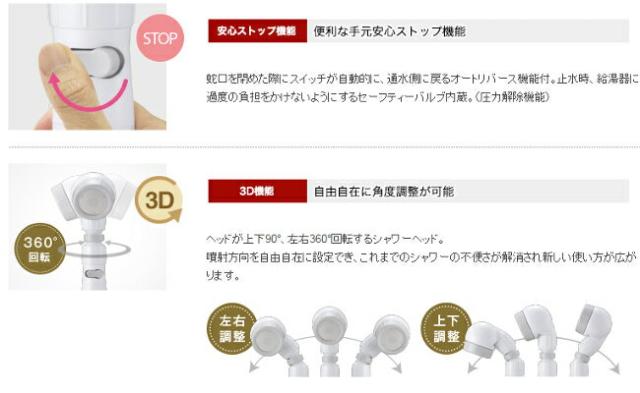 セーフティバルブ(安心ストップ)機能付きのシャワーヘッドです。