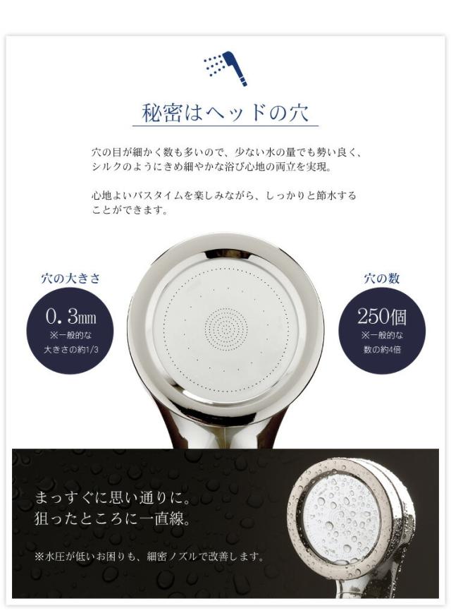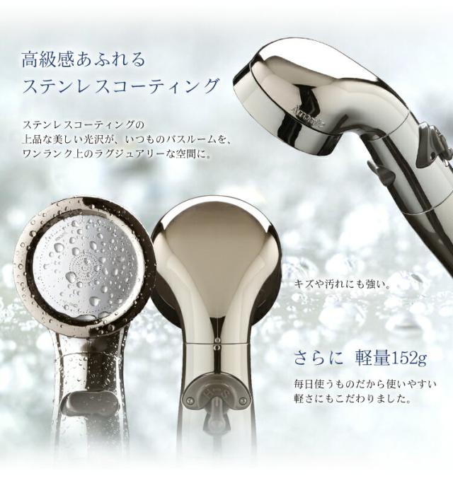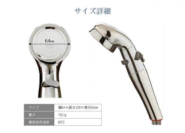| ★★★★★ シャワーヘッドの手元にストップスイッチがあるから、すごく楽。また水圧調整も出来、内側の穴からは勢いがよく、外側の穴からは柔らかいお湯がでるので、とても気持ち良いです。持ち手も細くなって持ちやすく、軽いし、ステンレスコーティングしてある為、傷や汚れに強いと書いてある為、良い買い物が出来ました。 | ||