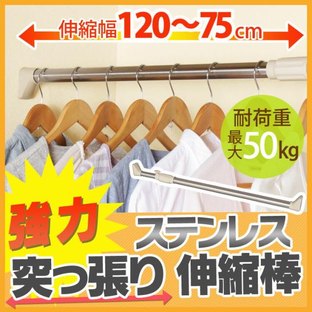 伸縮棒 つっぱり棒 ステンレス伸縮棒 H-SNPJ-120 送料無料 幅75〜120cm 突っ張り棒 強力 つっぱり 突