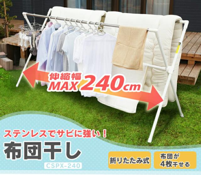 布団干し ふとん干し 洗濯物干し 物干し ふとん干し CSPX-240 洗濯干し 布団 干し ステンレス物干し 屋外物干し 屋外 伸縮 伸縮可能 4枚 室内物干し コンパクト 軽量 省スペース 洗濯物干し 物干しスタンド アイリスオーヤマ