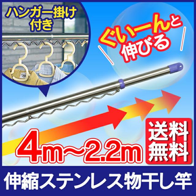 物干し竿 屋外 室内 伸縮 2.2〜4m ステンレス 丈夫 サビにくい ハンガー掛け付き 物干し ベランダ物干し 洗濯物干し 室内物干し 部屋干し 梅雨 除湿機 サーキュレーター 伸縮竿 伸縮タイプ ステンレス物干し竿 アイリスオーヤマ SU-400H *