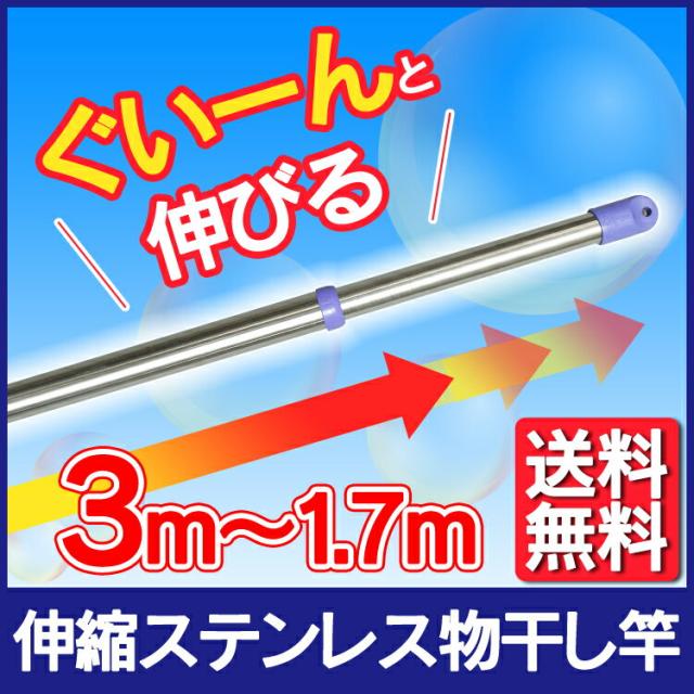 物干し竿 屋外 室内 伸縮 1.7〜3m ステンレス 丈夫 サビにくい ベランダ 物干し ベランダ物干し 洗濯物干し 室内物干し 部屋干し 梅雨 除湿機 サーキュレーター 伸縮竿 伸縮タイプ ステンレス物干し竿 アイリスオーヤマ SU-300 *