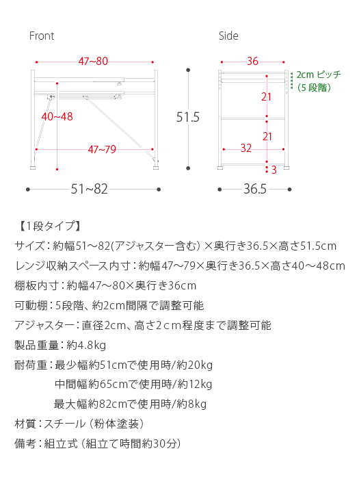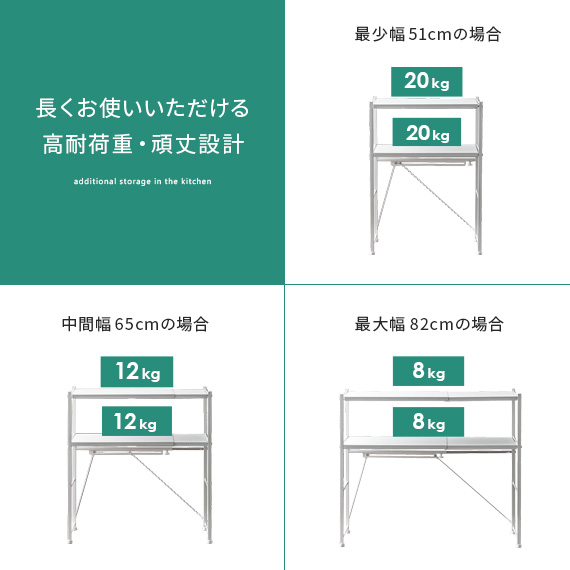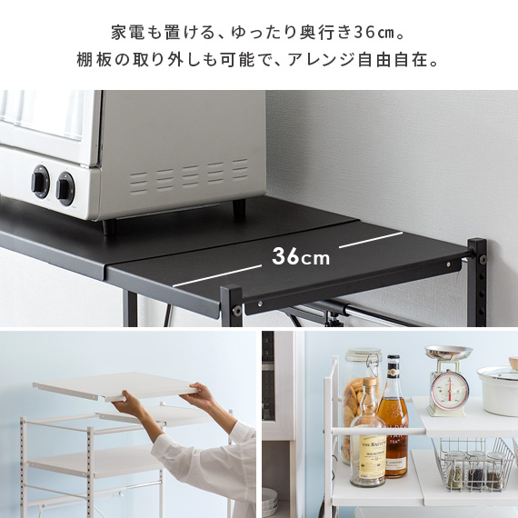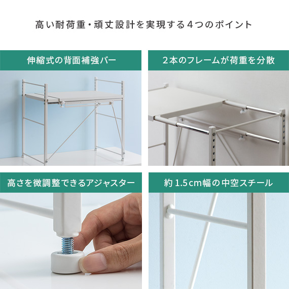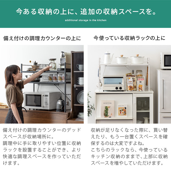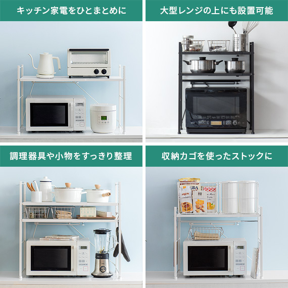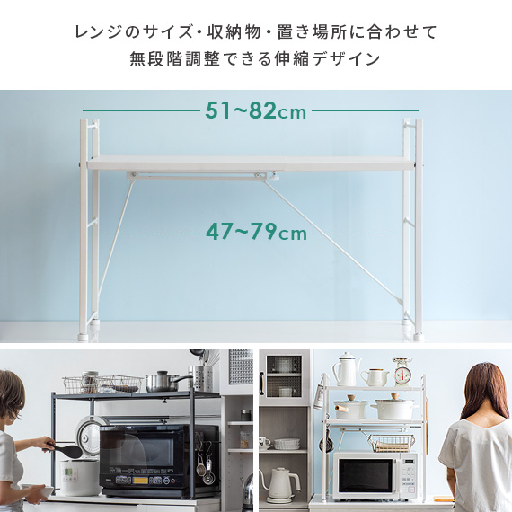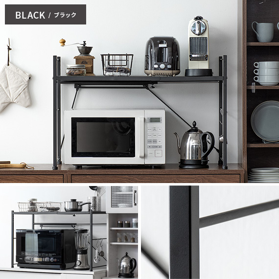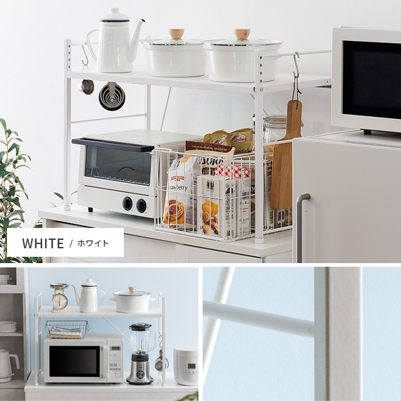 レンジ上 ラック おしゃれ 伸縮 キッチンラック レンジラック レンジ台 収納棚 キッチン 収納 キッチン用品 トースターラック トースター上 棚 rack 白 ホワイト 伸縮キッチンラック Reole(レオール) 1段タイプ ホワイト ブラック