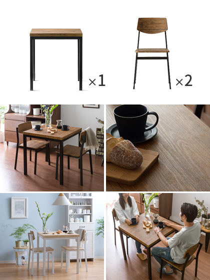 ダイニングテーブルセット 2人掛け 3点セット 70cm幅 2人用 ダイニングテーブル ダイニングセット おしゃれ ヴィンテージ 北欧 ミッドセンチュリー 食卓テーブル ダイニング ダイニング3点セット FORK〔フォーク〕