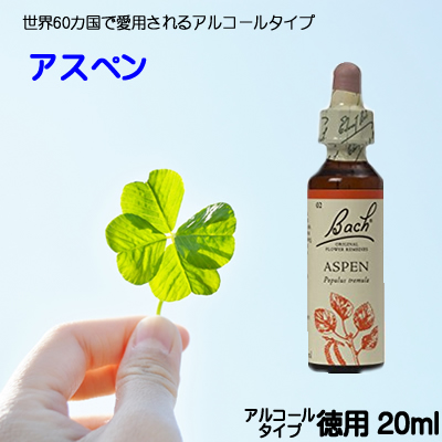 バッチフラワーレメディ アスペン 20ml 徳用 アルコールベース ブランデー 英国製 正規輸入品 フラワーエッセンス 癒し 安心感 恐怖 不安 悩み メンタルケア 勇気 安らぎ 伝統的 レシピ 節目のケア セルフケア メール便 送料無料