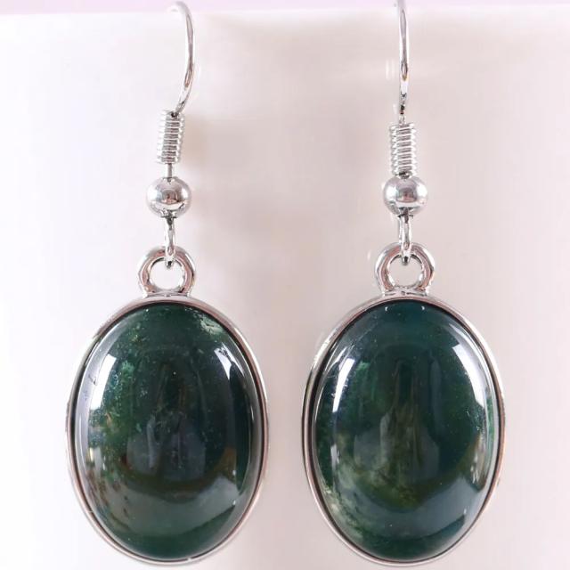 オーバルナチュラルストーンステンレスピアス(グリーンオニキス)/1ペア販売 両耳用 天然石 緑色 8月の誕生日石 だ円形 丸い 男性 女性 ボヘミアン サージカルステンレス316L メンズ レディース 揺れる フックピアス チャーム 20G 20ゲージ プレゼント パワーストーン