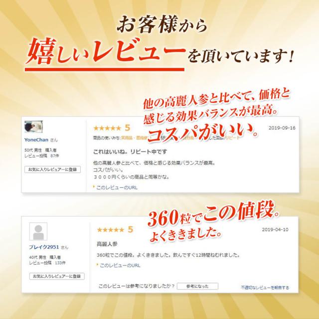 | 高麗人参末、デキストリン、エゾウコギエキス末、カンカエキス末/セルロース、ステアリン酸カルシウム、微粒二酸化ケイ素、糊料(メチルセルロース) |