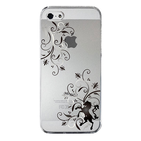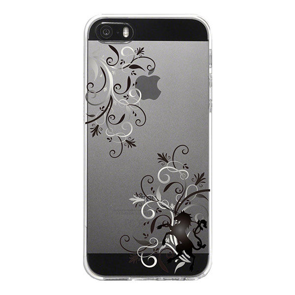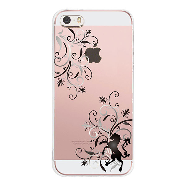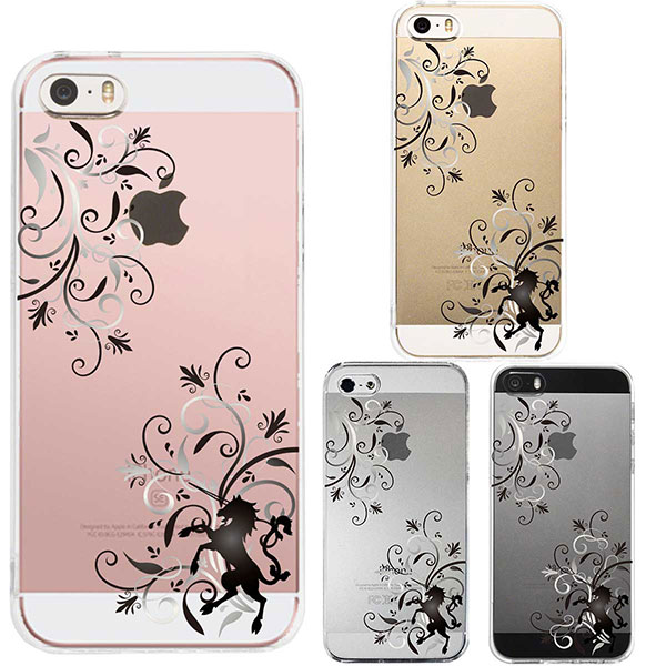 iPhone SE 第1世代 iPhone 5s 5 ケース ハードケース クリア カバー アイフォン フローラル & ユニコーン (グレー)