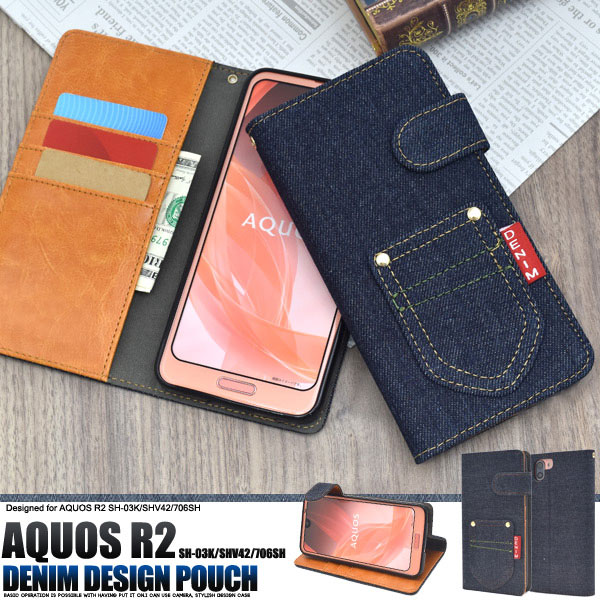 AQUOS R2 SH-03K/SHV42/706SH ケース 手帳型 デニムデザイン カバー アクオス アールツー スマホカバー スマホケース