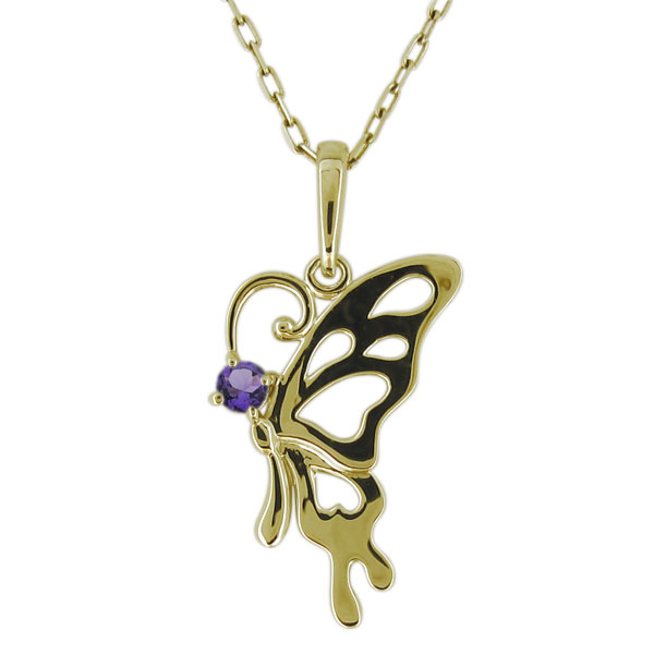 【送料無料】ネックレス・レディース・蝶・バタフライ・アメジスト・ペンダント・10金