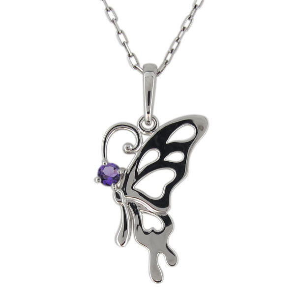 ネックレス・アメジスト・シルバー・レディース・蝶・バタフライ・ペンダント