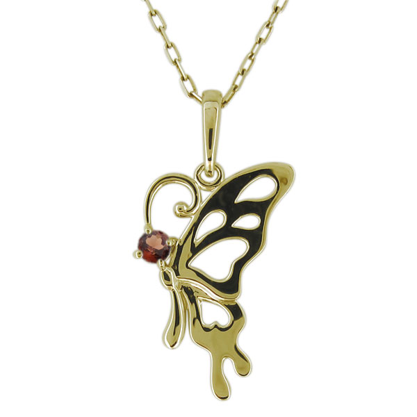 【送料無料】ネックレス・レディース・蝶・バタフライ・ガーネット・ペンダント・10金