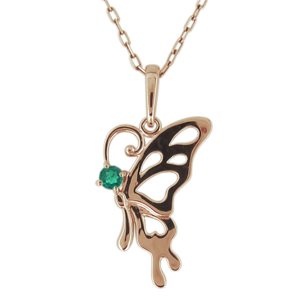 【送料無料】エメラルド・ネックレス・5月誕生石・バタフライ・蝶・ペンダント・18金