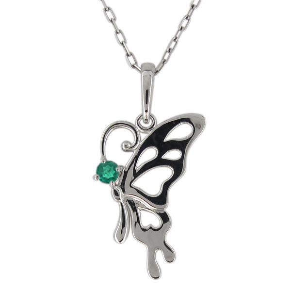 【送料無料】レディースネックレス・蝶・バタフライ・エメラルド・プラチナ・ペンダント