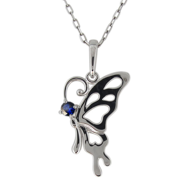 ネックレス・サファイア・シルバー・レディース・蝶・バタフライ・ペンダント