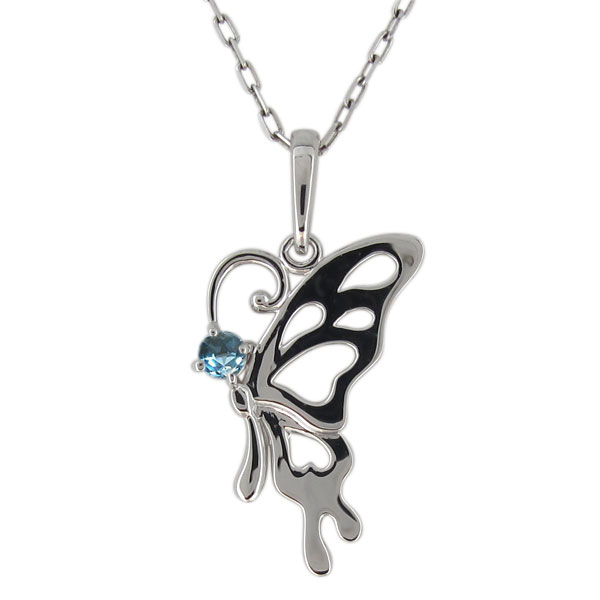 【送料無料】レディースネックレス・蝶・バタフライ・ブルートパーズ・プラチナ・ペンダント