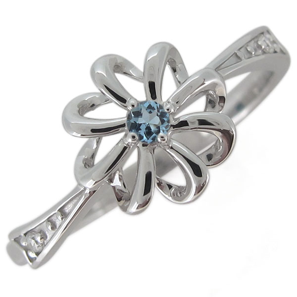 【送料無料】レディース リング 花 アクアマリンサンタマリア フラワー リボン プラチナ