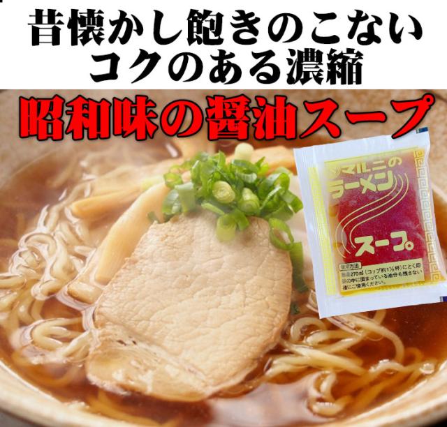 《昭和の味スープ》しょうゆ(国内製造)、食塩、濃縮がらスープ(ポーク・チキンエキス、濃縮がらエキス)、動物油脂、チキンブイヨン、たん白加水分解物、香辛料、砂糖、ポークエキス、植物油脂、(一部にえび・小麦・ごま・大豆・鶏肉・豚肉・ゼラチンを含む)/酸味料(アミノ酸等)、酸化防止剤(V.E)、ビタミンB1