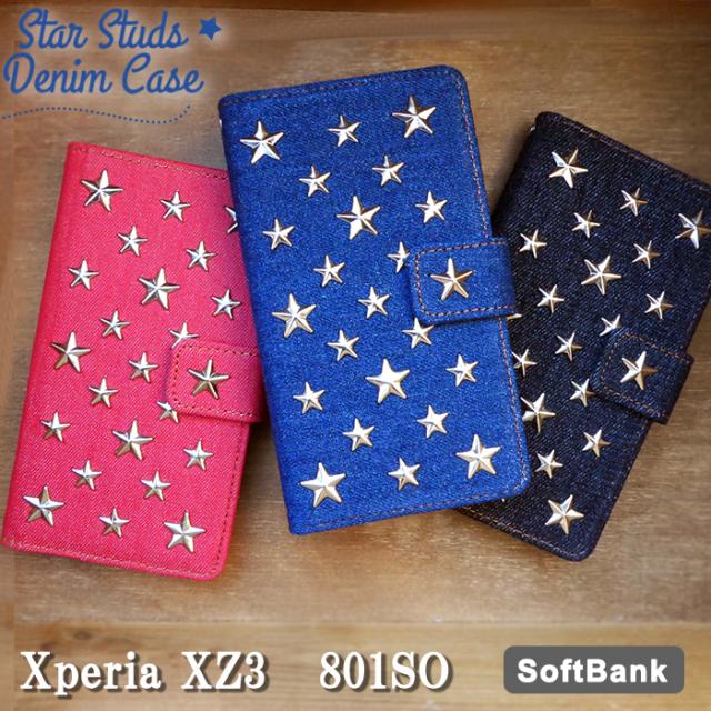 Xperia XZ3 801SO ケース カバー 手帳 手帳型 スタースタッズデニム スマホケース スマホカバー エクスペリア XZ3