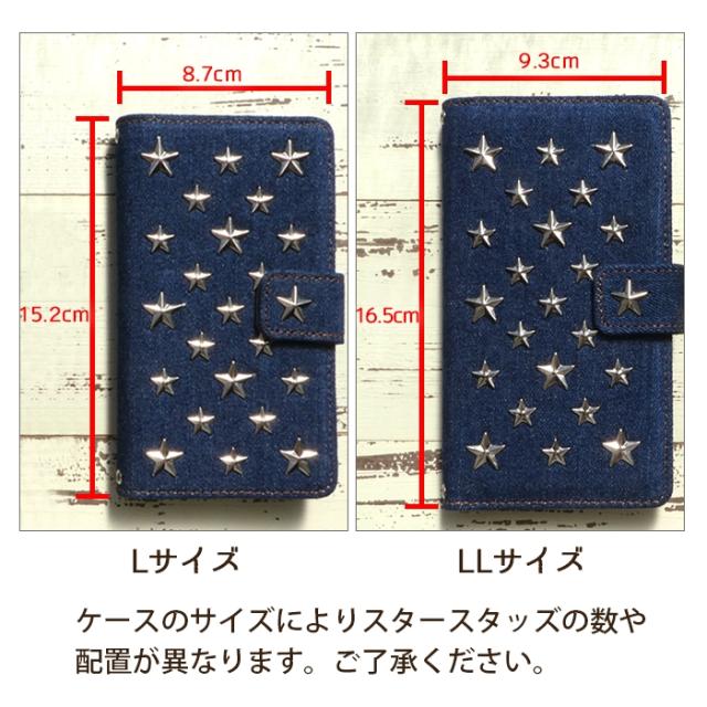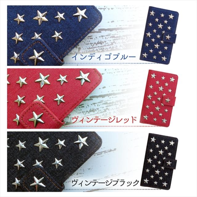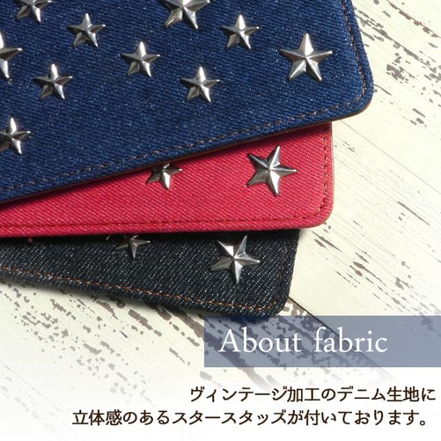 人気のデニム手帳にスタッズスターを散りばめたクールでカジュアルな手帳型ケースです。