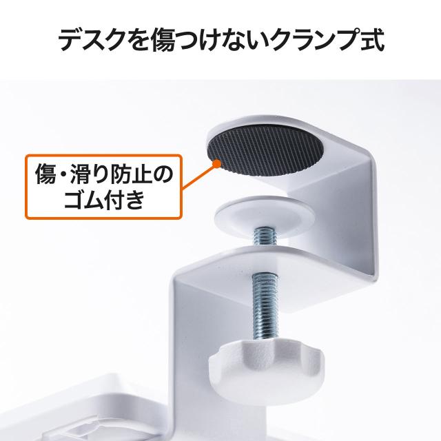 ●工具不要で取り付けできるクランプ設置型です。厚さ1.5〜4cmの天板に対応します。