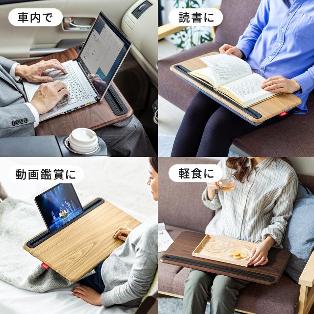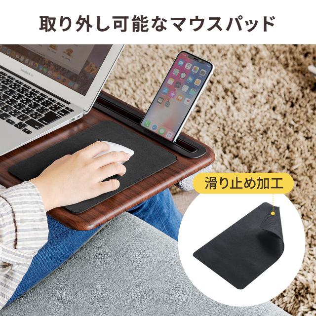 膝上テーブル 幅57cm スマホスタンド マウスパッド付き ノートパソコン タブレット ラップトップテーブル 木目調 [200-HUS008]