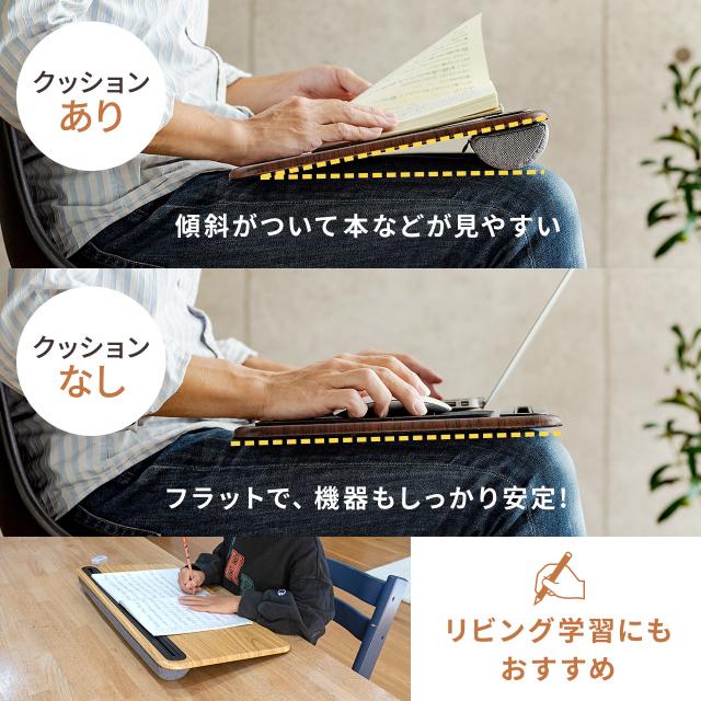 ⇒ご購入の前にご確認下さいノートパソコンやタブレットを膝上に乗せて操作できる、木目調のラップトップテーブル。着脱可能なクッションが重みを吸収して快適に作業できる。【WEB限定商品】