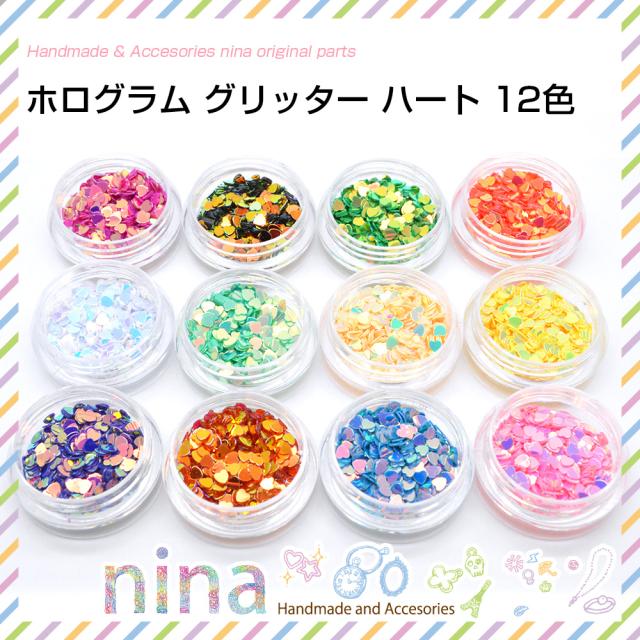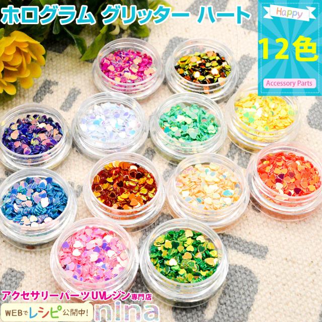 ホログラム グリッター ハート 12色 ホログラム カラー ハンドメイド ホログラム パーツ グリッター 12色 ハート お得 デコ 材料 レジンパーツ UVレジン液 UVレジン