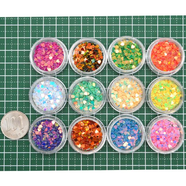 ■商品説明: 12色のハート型ホログラムになります。キラキラハートのホログラムがとっても可愛いです!レジンアクセサリーやネイルにも♪