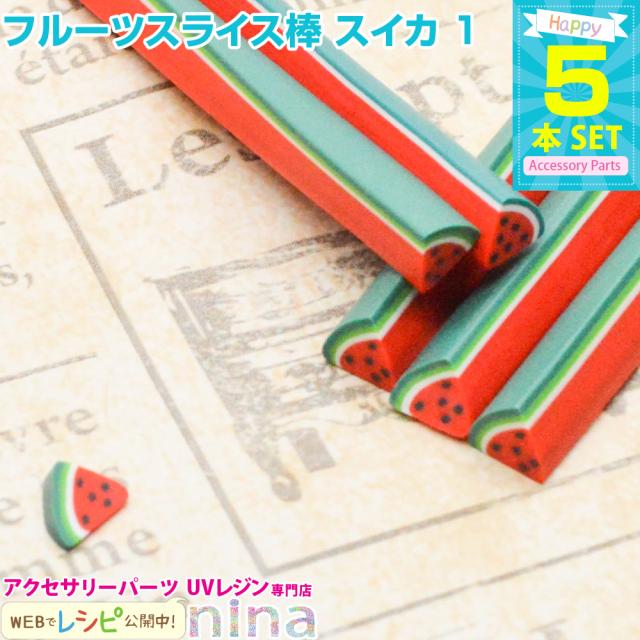 フルーツスライス棒 スイカ 5本セット 1 スライス棒 かわいい ステック スライス棒 ネイル フルーツ レジン液 スイカ デコパーツ セット 5本 手作り デコ 小