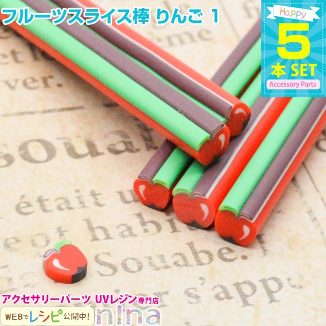 フルーツスライス棒 りんご 5本セット 1 | フルーツスライブ棒を使うだけ可愛く! / スライス棒 フルーツ グレープフルーツ デコ 小 ハンドメイド アクセサリー 手芸 ステック ネイル デコパーツ ネックレス 手作り UVレジン レジン