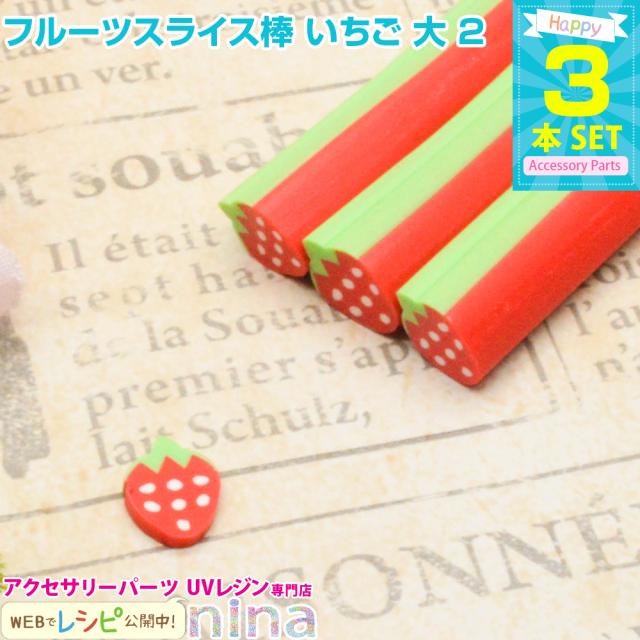 フルーツスライス棒 いちご 大 3本セット 2 スライス棒 レジン液 UVレジン スライス棒 ピアス フルーツ デコパーツ いちご 手芸 クラフト ネックレス アクセサリー ハンドメイド 手作り