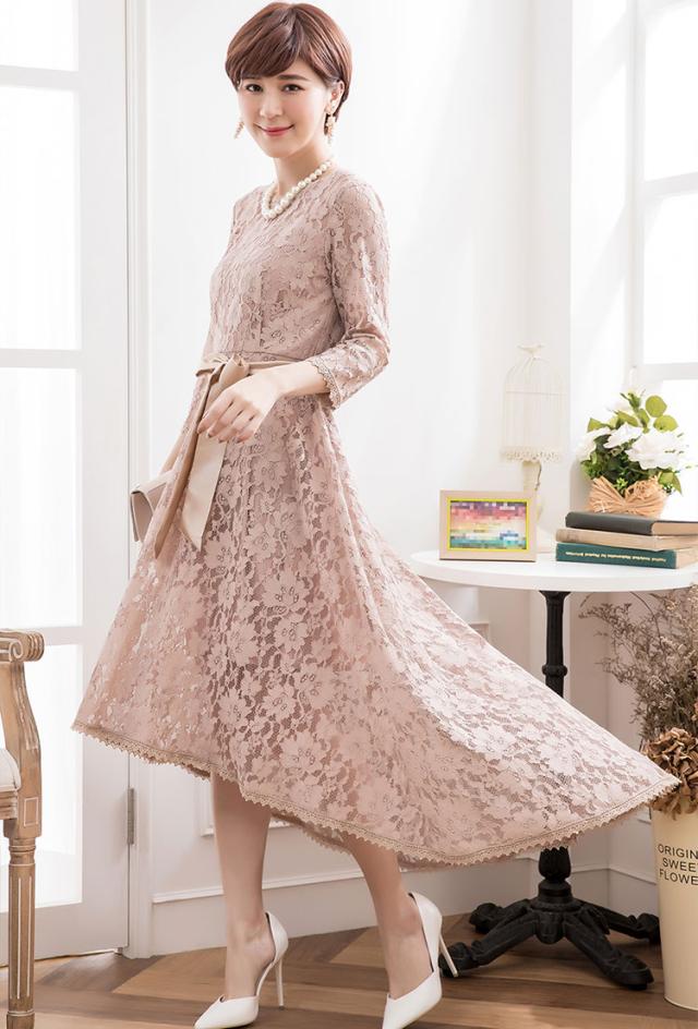 首周り・袖・裾には高級感漂うケミカルレースが施され、華やかな印象にしてくれます。