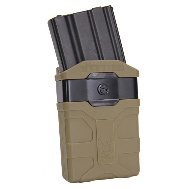 WARRIOR ASSAULT SYSTEMS社の耐久性と防水性に優れたお手入れが楽なポリマー製のライフルマガジンケースです。M4マガジン1本を収納できるマガジンケースで、360度好きな角度に変更出来るので取付の自由度があがります。マガジン正面から樹脂製の盲蓋を外す事で、角度調整ネジへアクセスができます。