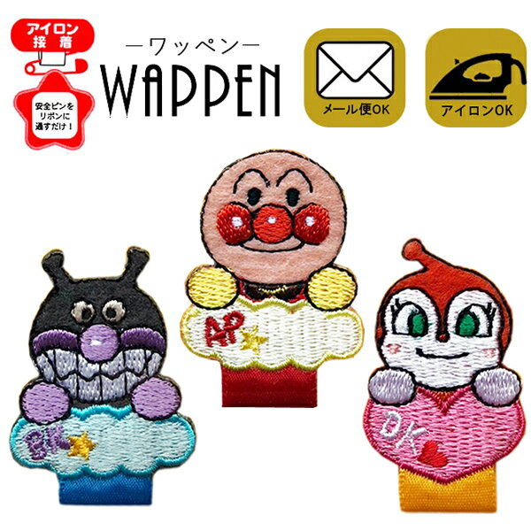 名札付け アンパンマン ばいきんまん ドキンちゃん ワッペン 刺繍 アイロン接着 キャラクター アップリケ 名前 正規品 母の日 プレゼント ギフト