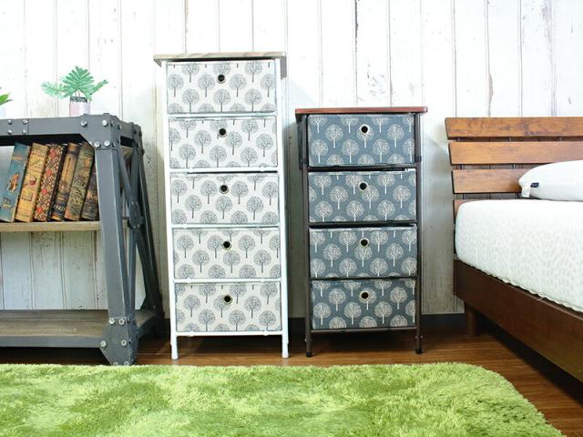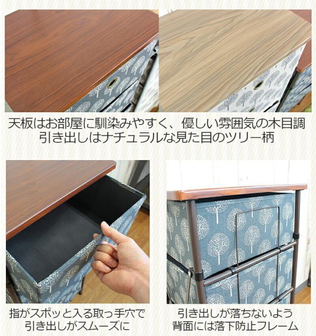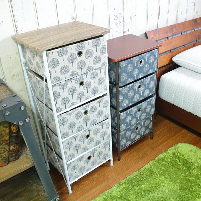 リビングチェスト 簡単組立チェスト リーチェ 4段 LFS-654 木目調天板ツリー柄 お洒落 インテリア 収納 agesugi_sis