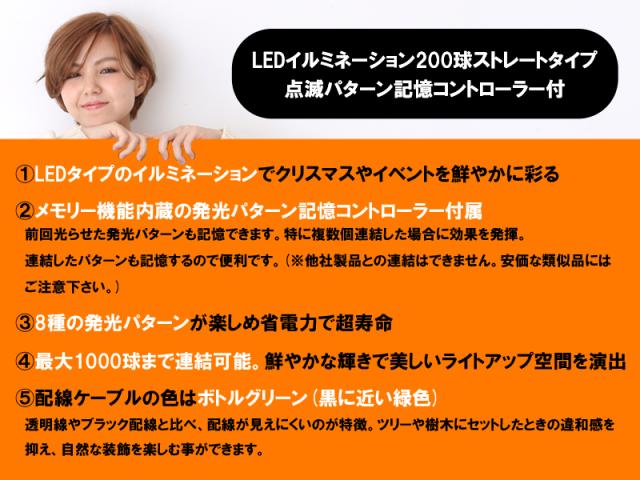 ■商品内容:LEDイルミネーション200球ストレートタイプメモリー機能内蔵コントローラー付