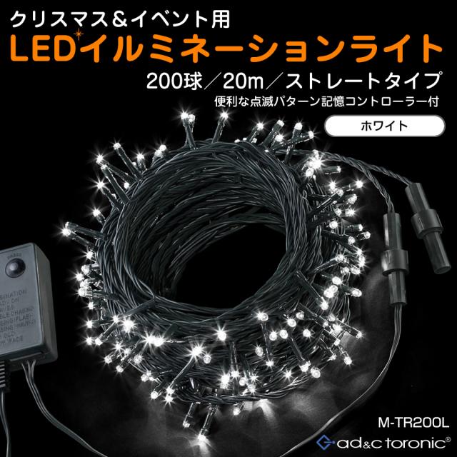 イルミネーション LED ライト 照明 200球 ストレート メモリー 付 連結可 (ah-M-TR200L)【沖縄県除き送料無料】 コントローラ付 高輝度 高品質 イベント 8パターン点灯 記憶 クリスマスライト 200灯 agesugi_sfp