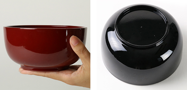 石川県山中塗で作られているどんぶりです。キズが付きにくく丈夫なプラスチック製で軽くて割れにくくなっています。好みに合わせて選べる漆の基本色「黒と朱」は、料理を選ばず食卓を華やかに演出してくれます。