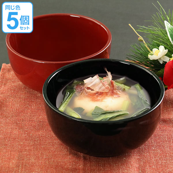 石川県山中塗で作られているどんぶり、5個セットです。キズが付きにくく丈夫なプラスチック製で軽くて割れにくくなっています。好みに合わせて選べる漆の基本色「黒と朱」は、料理を選ばず食卓を華やかに演出してくれます。