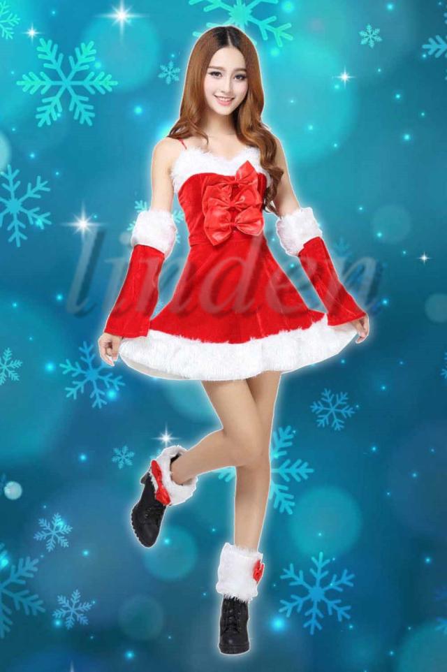 [linden] サンタ服 クリスマス レディース サンタクロース コスプレ かわいい ワンピース Christmas コスチューム 仮装 女性用 リボン